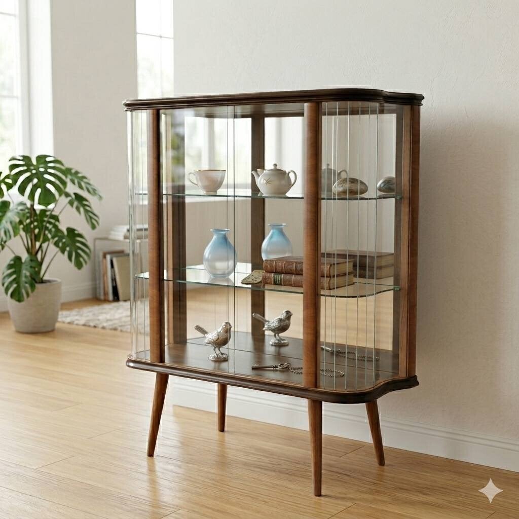 Exclusieve Jaren '50 Vitrinekast – Spiegeleffect – Hoogwaardig Vakmanschap